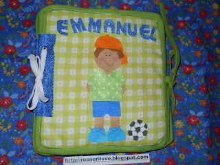 Pode ser com o tema do livro e também com o nome da criança móvel para ela montar em velcro.